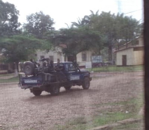 Les gendarmes, appelés en urgence par la ministre du travail Annie Michelle Mouanga pour venir déloger les couturiers stylistes au sein de l'ACFPE le vendredi 12 septembre 2025. Photo CNC