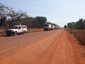 Un Convoi humanitaire de plusieurs véhicule du CICR en République centrafricaine.