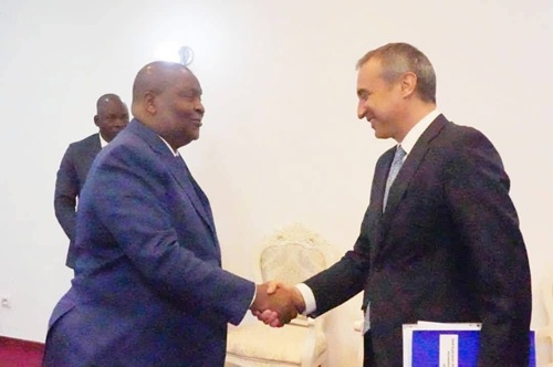 La rencontre entre le Président centrafricain Faustin Archange Touadera et Diego Escalona PATUREL, Ambassadeur de l’Union européenne en poste en Centrafrique. Photo la Renaissance