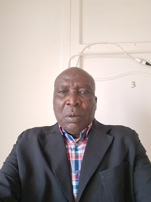 Portrait en gros plan de Monsieur Fidèle Hintia, connu sous le sobriquet de dernier soldat, activiste politique centrafricain