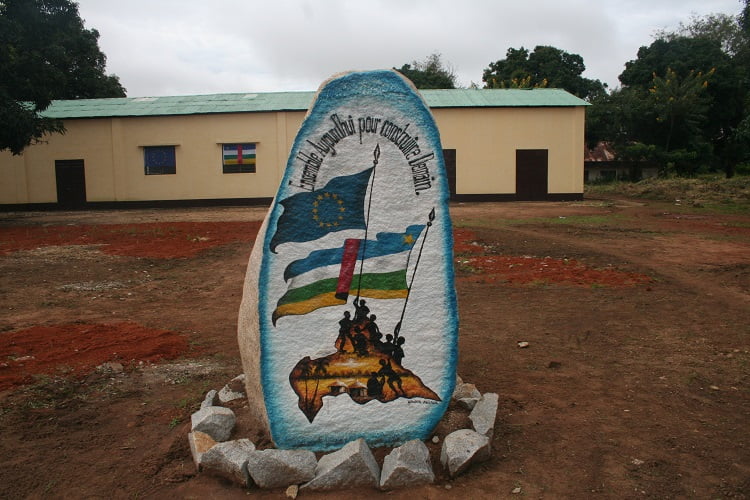 drapeaux de l'union européenne et de la RCA à Bouar par CNC