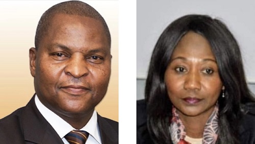 Le Président Faustin Archange Touadera à gauche, sa ministre Sylvie Baïpo-Témon à droite