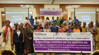 Les 4 et 5 mars 2026, dans la salle de conférence de l’hôtel Ledger Plaza de Bangui, le Global Survivors Fund a réuni des survivantes de violences sexuelles liées aux conflits, des membres du gouvernement et des représentants d’organisations internationales pour un atelier national de plaidoyer autour d’une question centrale : comment transformer une expérience pilote en un programme national de réparation pérenne en République centrafricaine.