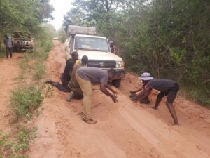 En saison sèche, les véhicules s’enlisent dans le sable. Pendant les pluies, la progression se compte parmi les sables mouillés en kilomètres par jour, voire par semaine. Une véritable épreuve pour les conducteurs et les commerçants.