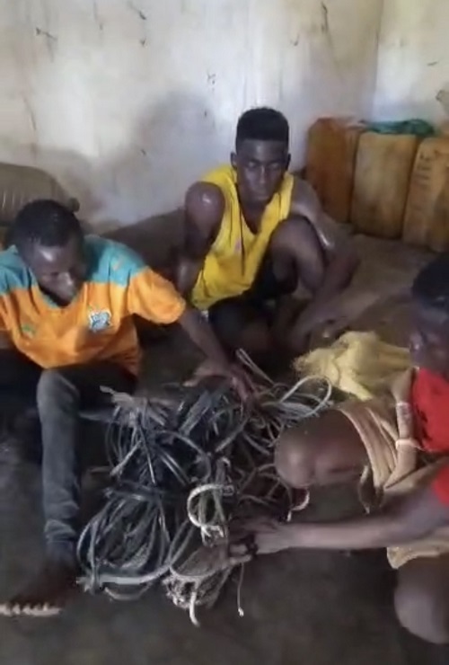 Deux jeunes garçons présumés voleurs pris en flagrant délit de vol de câbles électrique au quartier Benz-vi à Bangui, le dimanche 14 avril 2024