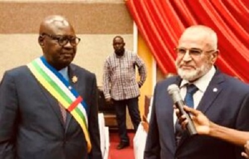 Simplice Mathieu Sarandji et Alexandre Ivanov, chef de la COSI (Communauté des Officiers pour la Sécurité Internationale – une institution de représentation relevant du groupe PMC Wagner) le 15 Octobre 2021.