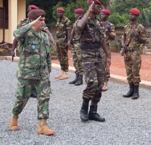 Cérémonie au sein du ministère de la défense centrafricain le 15 mai 2018 à l’occasion de la fin de formation logistique menée par le pilier éducation de l’EUTM-RCA. En présence de l’inspecteur général des forces armées, le général de division DOLLE-WAYA et le commandant de l’EUTM-RCA, le général Herminio Maio. La formation a eu lieu du 17 avril au 9 mai 2018 au profit des officiers et sous-officiers gestionnaires logistiques des forces armées centrafricaines.Fin de formation des FACA par EUTM-RCA à Bangui.