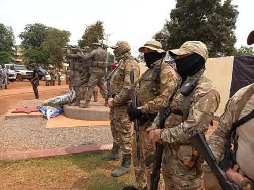 Les mercenaires russes à Bangui, célébrant le premier anniversaire de la mort de leur patron