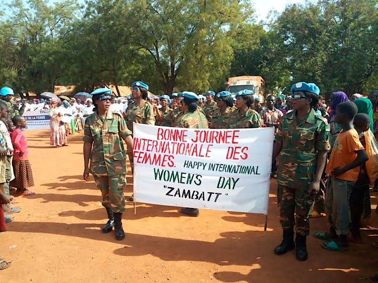 Au début de la journée du 8 mars à Bria, une marche silencieuse est organisée regroupant plusieurs dizaines des femmes issues de toutes les communautés locales, y compris des femmes militaires en mission des Nations-Unies en République centrafricaine.