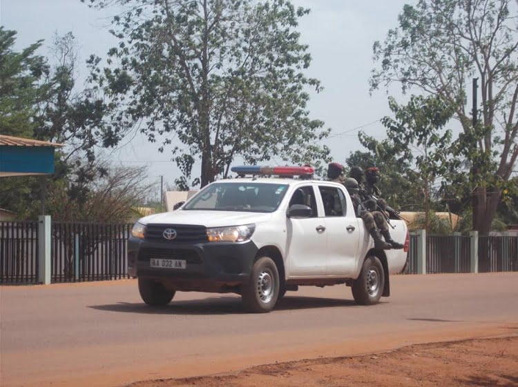Pickup du cortège présidentiel au centre-ville de Bangui. Crédit photo : Mickael Kossi / Corbeaunews