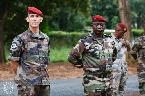 Le nouveau commandant de l'EUTM-RCA, le général Montgros et le général Betibangui sous-chef plan de l'état-major au camp kassï